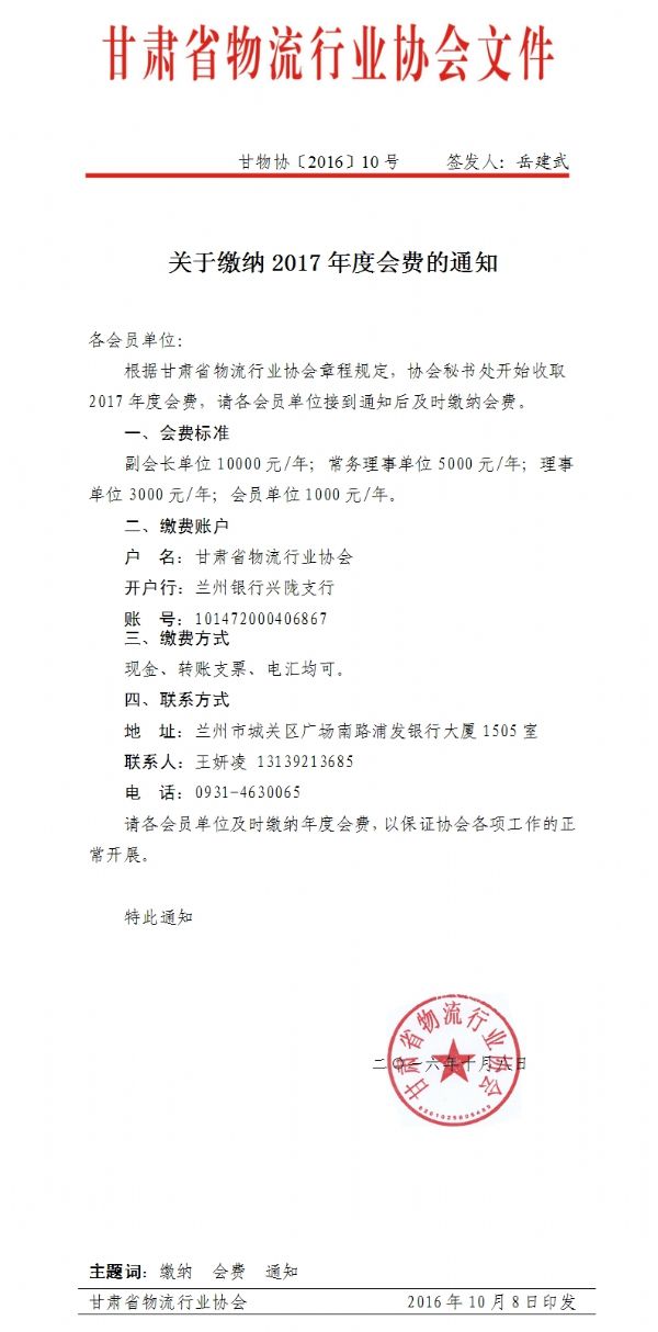 關(guān)于繳納2017年度會(huì)費(fèi)的通知