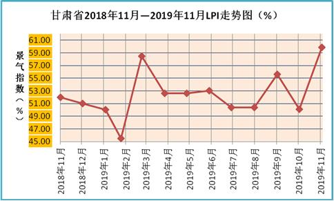 2019年11月份甘肅省物流業景氣指數(LPI)為59.8%,比上月回升9.7個百分點,快遞業景氣指數(LPI)為77.6%,高于全省平均水平。各分項指數除物流服務價格、主營業務成本、固定資產投資完成額、業務活動預期外均有不同程度的回升。11月份甘肅省物流景氣指數有較大幅度回升,顯示出隨著經濟增長回升以及電商活動影響,物流活動更加活躍。