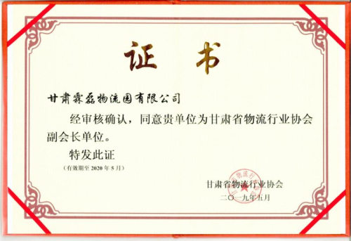 5月7日,經(jīng)甘肅霖磊物流園有限公司申報(bào),甘肅省物流行業(yè)協(xié)會(huì)審核確認(rèn),同意該公司為協(xié)會(huì)副會(huì)長(zhǎng)單位。