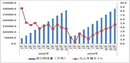 2018-2019年進口物流量及增長情況