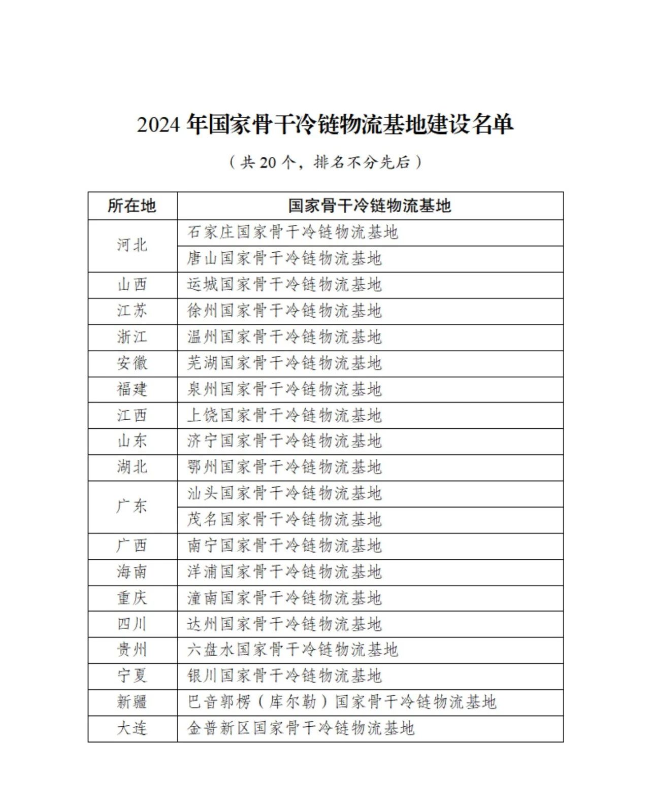 近日,國家發展改革委印發《關于做好2024年國家骨干冷鏈物流基地建設工作的通知》,發布新一批20個國家骨干冷鏈物流基地建設名單。2020年以來,國家發展改革委已分4批將86個國家骨干冷鏈物流基地納入重點建設名單,覆蓋31個省(自治區、直轄市,含新疆生產建設兵團)。
